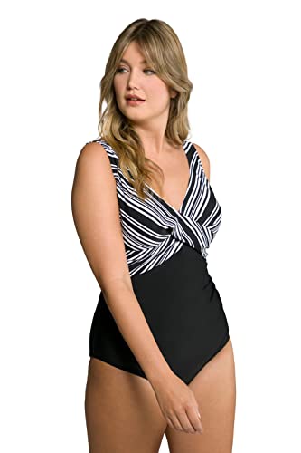 ULLA POPKEN Badeanzug, Streifen, Wickeloptik, Softcups Costumi da Bagno, Black Beauty (Ersatzfarbe), 58 Donna