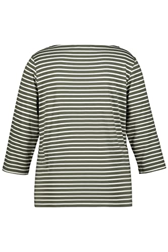 ULLA POPKEN Shirt, Ringel, Classic, Rundhals, 3/4-arm, Modal T, Backwoods, 60 Donna