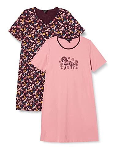 ULLA POPKEN Big Shirts, 2er, Pferde, Organic Maglia Lunga da Notte, Rot, 50+ Donna