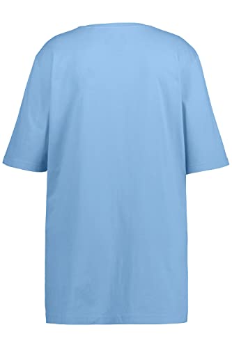 Ulla Popken T-Shirt, Girocollo, Relaxed, Mezza Manica, Blue Cascade, 48-50 Donna