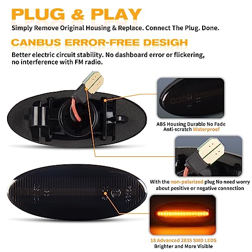 【Installazione Semplice】 LED dinamico luci di segnalazione laterale con T10 presa, può sostituire direttamente originale OEM Bulb, più e play.LED Indicator Light Dynamic Light ha fumato lente, design squisito, aspetto unico, un buon elemento di decorazione per la vostra auto come bene.