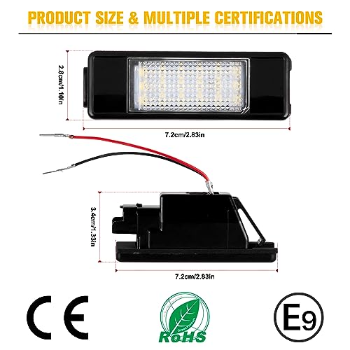 【Più luminoso delle lampadine OEM】 Luce targa a LED è composta da 18 chip LED 2835 SMD, che sono 5 volte più luminosi dell'originale OEM, ma anche più ecologici e durano più a lungo delle lampadine alogene.