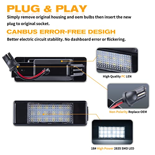 【Migliore delle lampadine OEM】Ogni luce targa a LED incorporata 18# chip LED SMD-2835 ad alta potenza, molto più luminoso dell'originale, anche ecologico. Anche la durata di vita è superiore a quella delle lampadine alogene.