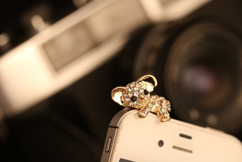 Poposh - Set di 4 tappi antipolvere universali, per presa auricolare (3,5 mm), a forma di koala, con strass, colore: Oro