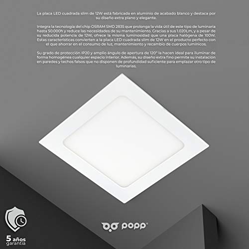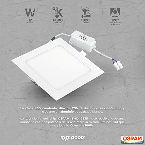 Popp- Plafoniera a LED, ultra piatta, quadrata colore bianco, da 6 w, 9 w, 12 w, 18 w, 24 w, colore da 6000 k, 4000 k, chip OSRAM, confezione da 2 12 6000K