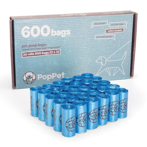 Poppet, Sacchetti Igienici Extra Stretch per Escrementi Cani, Resistenti, Facili da Aprire e a Prova di Perdite, in Materiale Riciclato, per Tutti i Dispenser, Confezione da 30 Rotoli, 600 Sacchetti