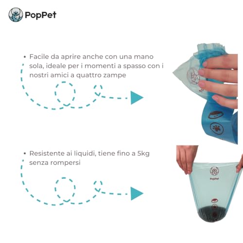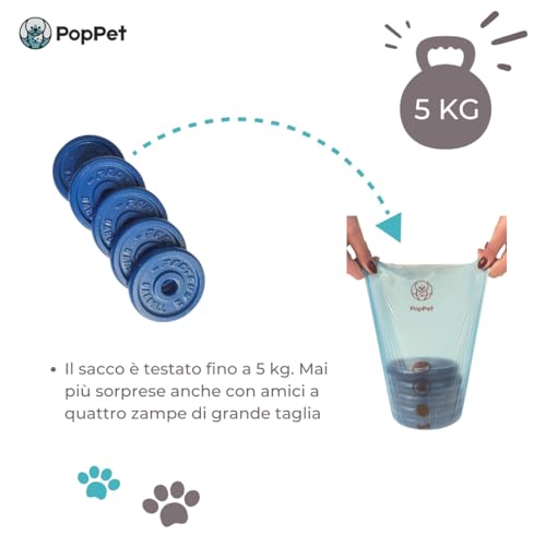 SACCHETTI GRANDI E RESISTENTI: i sacchetti per cani di Poppet sono grandi 32x22 cm e sono molto resistenti, grazie ad una miscela che li rende più elastici. Adatti ai cani di tutte le taglie e anche ai gatti, sono ideali per raccogliere i bisogni del tuo amico a quattro zampe senza sorprese