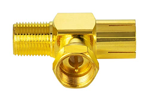 Contenuto della confezione: 4 adattatori a T per antenna satellitare Poppstar (connettore per articolo: 1 spina F, 1 presa antenna IEC, 1 presa F), contatti placcati in oro