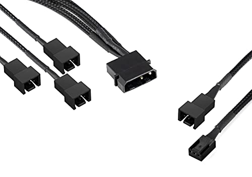 Compreso: set adattatore Molex 12V con sdoppiatore ventole a Y (15 cm, 1x spina Molex maschio, 3x spine 2-pin) e cavo di estensione 3-pin 30 cm