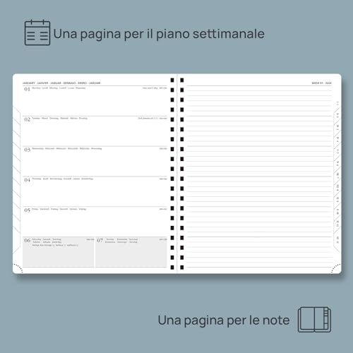 【AGENDA 2024】è stata progettata per aiutarvi a pianificare meglio il vostro tempo. Questa agenda settimanale è composta da una pagina di pianificazione settimanale e da una pagina di note settimanali, che consentono di pianificare facilmente il programma settimanale.