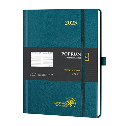 POPRUN Agenda 2023 Settimanale Verticale 26,5 x 21,5 cm - Planner 2023 Grande con Copertina Rigida, Carta da 80 gsm Certificata FSC® - Verde Pacifico