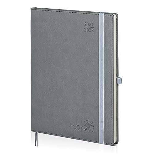 POPRUN Diario Scuola 2021 2022 - Agenda Settimanale 2021 2022 da Ago'21 a Ago'22 - Layout Verticale con Orario, Copertina in Pelle e Chiusura ad Elastico - Circa A4 26,5 x 21,5 cm, Grigio