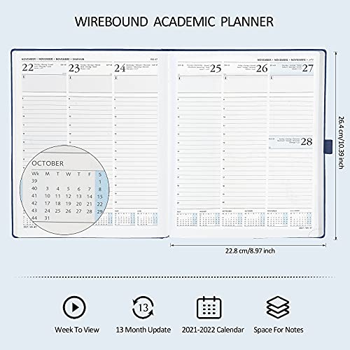 POPRUN Diario Scuola 2021 2022 - Agenda Settimanale 2021 2022 da Ago'21 a Ago'22 - Layout Verticale con Orario, Copertina in Pelle e Chiusura ad Elastico - Circa A4 26,5 x 21,5 cm, Blu Marina