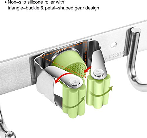 Più forte e più robusto: il porta mocio da parete Popun è realizzato in acciaio inossidabile SUS304 e silicone ecologico, che può contenere fino a 13,6 kg di peso, più resistente rispetto al materiale plastico. GARANZIA ANTISCIVOLO