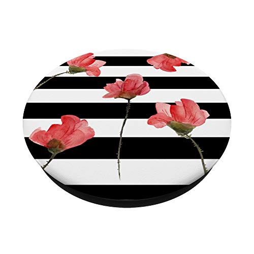 PopSockets Fiori che sbocciano dolci strisce bianche nere rosse PopGrip: Impugnatura per Telefoni Cellulari e Tablet Intercambiabile