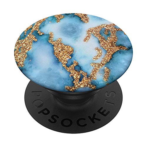 Effetto-Marmo-Blu-Azzurro-Bianco-e-Giallo-Effetto-Oro PopSockets PopGrip: Impugnatura per Telefoni Cellulari e Tablet Intercambiabile