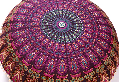 Popular Handicrafts Large hippie mandala Floor Pillow case - Cuscino - Cuscino da pavimento pouf rotondo della Boemia yoga Decor case- 81,3 cm 32" Pillow cover Magenta