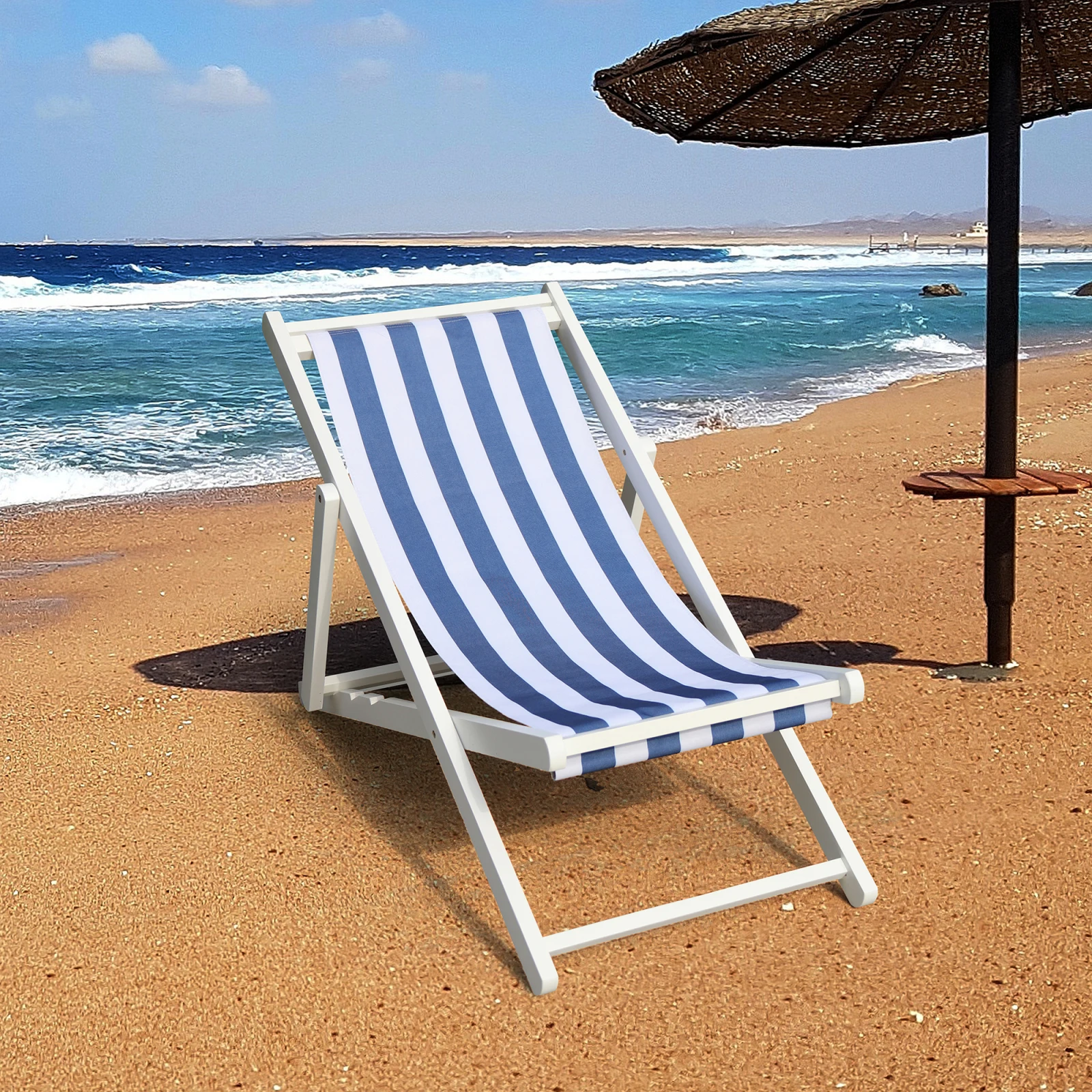 Populus Wood Sling Chair Blue Stripe Garden Backpacking Outdoor Camping Chair for Beach Travel Recliner