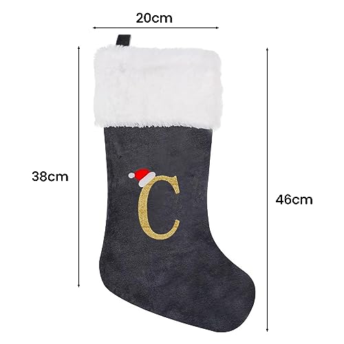 Porceosy Calza resistente agli strappi splendidamente ricamata natalizia a maglia con fiocco di neve lettera grande capacità con corda appesa Vacanze festive per regali giocattoli C