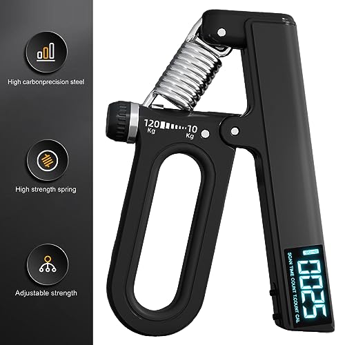 Porceosy Resistenza regolabile Grip Hand Strength Trainer Rinforzante per atleti Sollievo dallo stress con 4,5-54,4 kg antiscivolo Finger Exerciser Forearm Training Nero