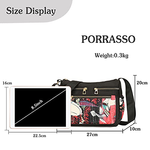 PORRASSO Casual Borsa a Tracolla Donna Multitasche Borse a Spalla Borsetta Nylon Crossbody Bag per Shopping Viaggio Uso Quotidiano Ragazza
