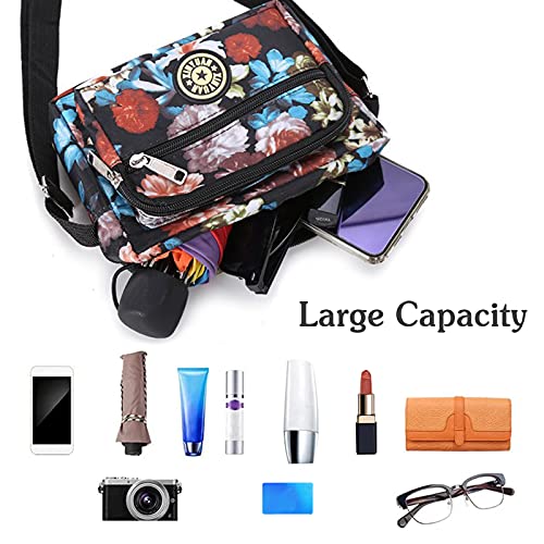 PORRASSO Donna Borsa a Tracolla Multitasche Casuale Borse a Spalla Borsetta Nylon Crossbody Bag per Shopping Viaggio Uso Quotidiano