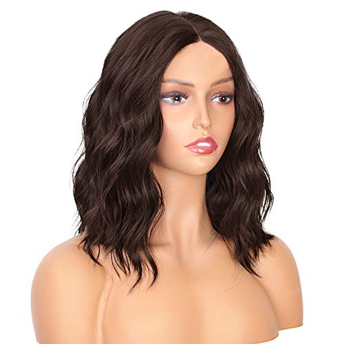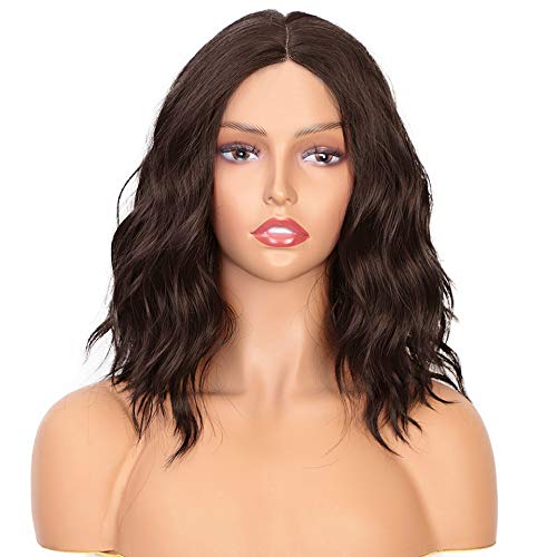 PORSMEER parrucca signora castano mossa ondulata per donne bianche naturali parrucca corta bob Parrucche resistenti al calore Parrucca marrone media Usura quotidiana