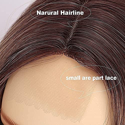 PORSMEER Parrucche piccolo front lace bionde ricce,con taglio profondo, lunghezza delle spalle, parrucca ondulata sintetica con radici scure, biondo realistico parrucca per donne bianche Ragazze