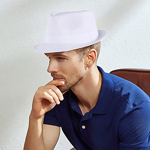 PORSYOND - Cappello Fedora, Panama, estivo, Trilby Derby, cappello in feltro da uomo, invernale, stile Jazz, cappello con nastro, B-bianco, Taglia unica