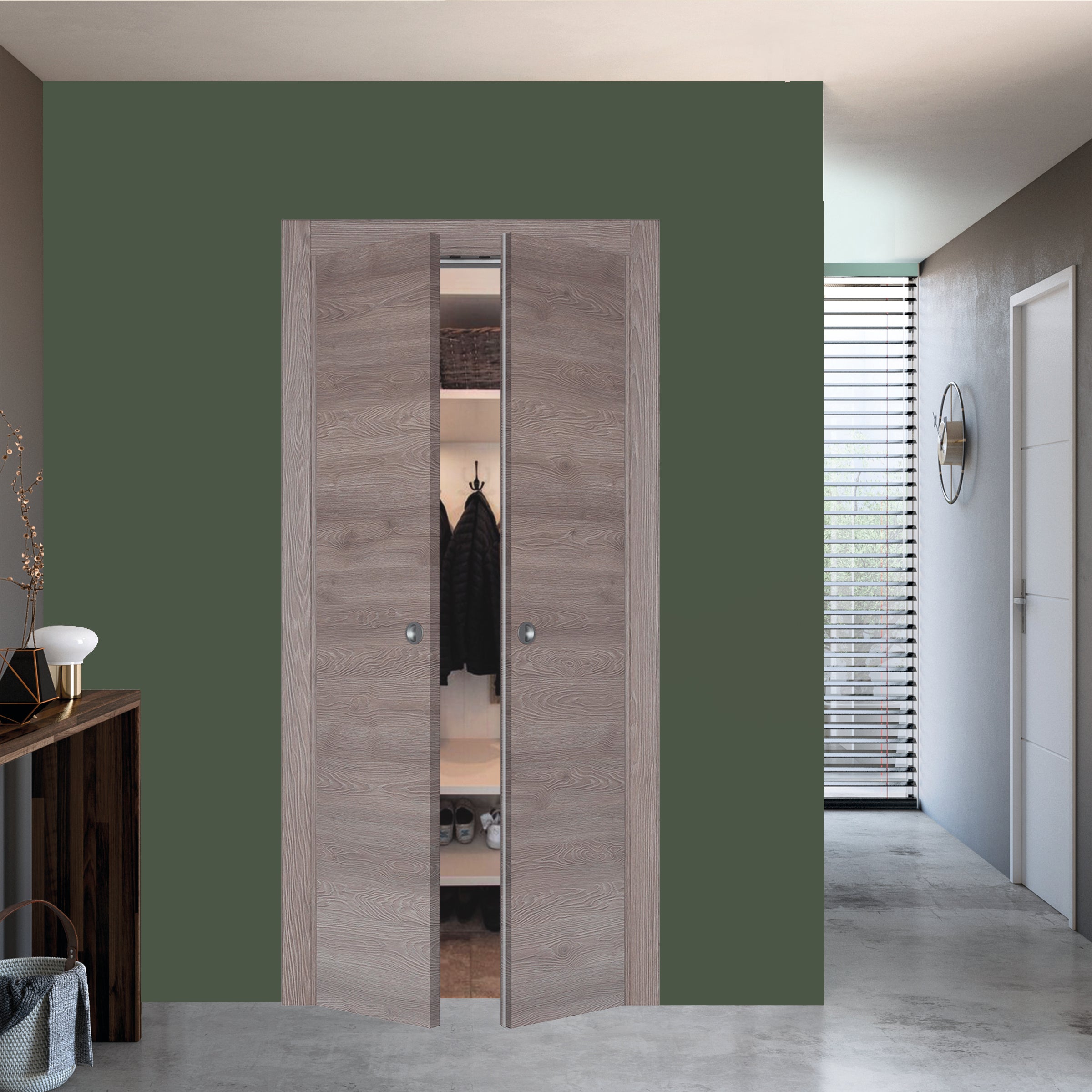 Porta armadio con apertura simultanea in legno dal colore pietra