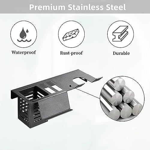Design pratico - Il supporto per asciugacapelli è compatibile con la maggior parte dei tipi e delle dimensioni di asciugacapelli, con ripiani sospesi e portacavi per riporre accessori come piastre, arricciacapelli, pettini, rasoi e cavi per capelli, salvaspazio e impermeabile.