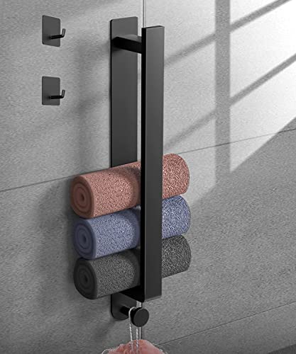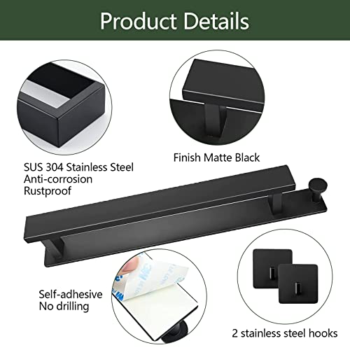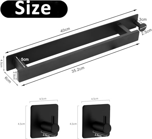 Nero Porta Asciugamani Bagno, Porta Salviette da Parete Porta Autoadesivo Asciugamano 304 Acciaio Inox Porta Asciugamani Ospite, Montaggio Parete per Bagno E Cucina, 40 Cm Con 2 Ganci Per Asciugamani