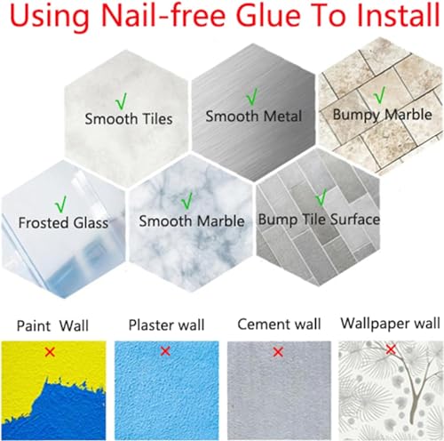 【Installazione facile】 Staccare le strisce posteriori autoadesive del portasciugamani, installarlo su una superficie liscia e attendere 24 ore prima di poterlo utilizzare. Suggerimenti: non adatto a superfici ruvide, come carta da parati, pareti dipinte, pareti in gesso, pareti in cemento.