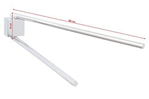 Porta asciugamani a due bracci tesa Ekkro, metallo cromato lucido, autoadesivo, tecnologia adesiva di montaggio, 80mm x 50mm x 420mm