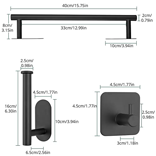 Porta Asciugamani JiGiU Set di Portasciugamani Bagno Acciaio Inox Set di Accessori da Bagno con 1 Porta Carta Igienica e 3 Ganci Adesivi -Set di Porta Salviette 40CM Autoadesivo - Nero