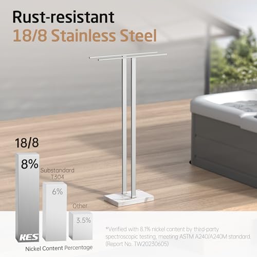 KES Porta Asciugamani da Terra Porta Asciugamani Bagno 2 Barre Marmo Portasciugamani Acciaio Inossidabile SUS304 Porta Asciugamano Spazzolato, BTH229-2