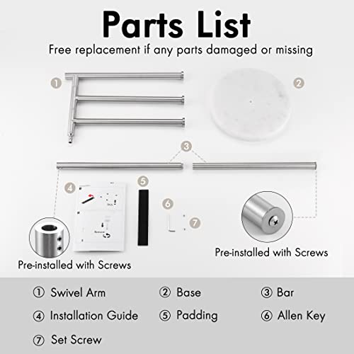 [Base pesante da 4,6kg - Mantiene stabile] Diversamente dai portasciugamani simili che in genere utilizzano una base da 2,2 kg sul mercato, la nostra base in marmo naturale pesa 4,6 kg, rendendo l'intero rack estremamente robusto. Grazie alla sua base pesante, questo portasciugamani può contenere tre grandi asciugamani da bagno contemporaneamente. Inoltre, KES fornisce 5 cuscinetti autoadesivi da attaccare sul fondo della base per evitare che si ribalti e danneggi il pavimento.