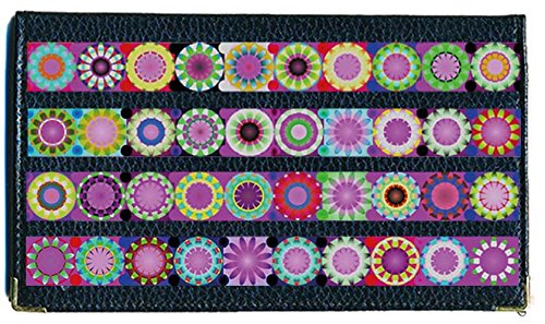 Porta assegni in pelle, portafoglio con tasche per carte e tessere, Per assegni con il tallone in alto Nero Fiore del nastro