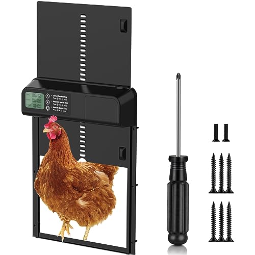 Installazione Facile e Conveniente: l'apriporta per pollaio è facile da installare, c'è 1 cacciavite e 6 viti. Questa porta intelligente per pollaio è compatibile con la maggior parte dei pollai e può essere facilmente installata con un minimo di tempo.