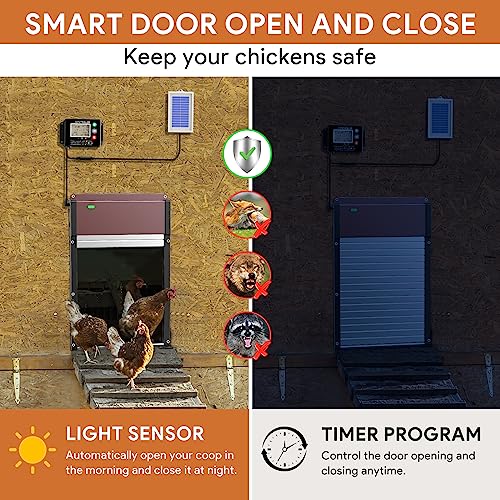 2023 New Porta Automatica per Pollaio con display, CHAMUTY Porta Automatica Pollaio Alluminio Rilevamento Della Luce, Timer di Ritardata Serale e Mattutina, Porta Pollaio Automatica