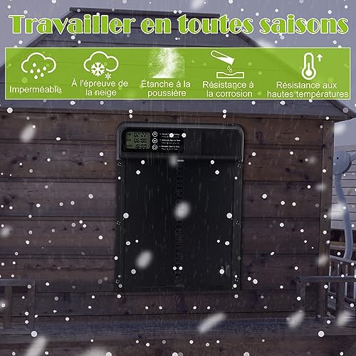 Materiali di Qualità - La porta pollaio automatica è realizzata in robusta lega di alluminio con finitura ossidata. È resistente e di lunga durata. È resistente alla corrosione, impermeabile e garantisce la sicurezza dei polli e del pollame anche in condizioni climatiche avverse.