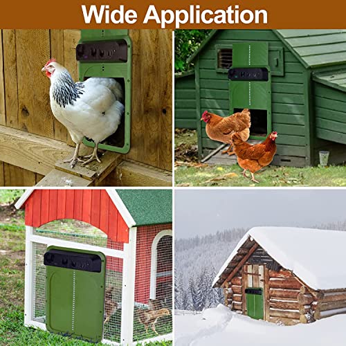 【Materiale di alta qualità】 La porta automatica del pollaio è realizzata in plastica di alta qualità, non facile da piegare, non facile da deformare, può resistere alla temperatura di -22℉ a 131℉, anche in caso di maltempo, può essere utilizzata normalmente e in modo sicuro.