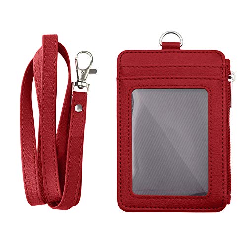 GOGO - Porta badge con chiusura a cerniera, 2 lati, PU Porta Tesserino in stile verticale con tasca e cordino