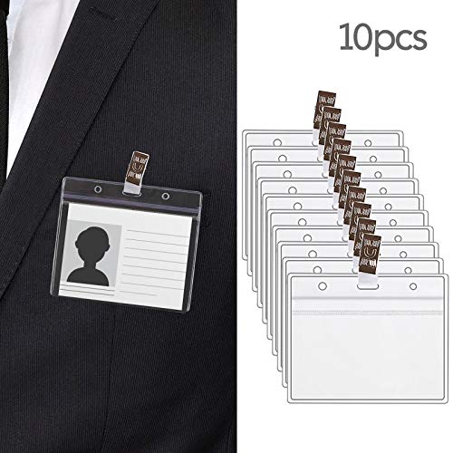 Riou Porta Badge (Confezione da 10/5/3/2),Porta Badge,Porta Cartellino Identificativo Vinile Trasparente e Impermeabili,Nome Porta Tesserino Con Clip per College, Conferenze, Ufficio