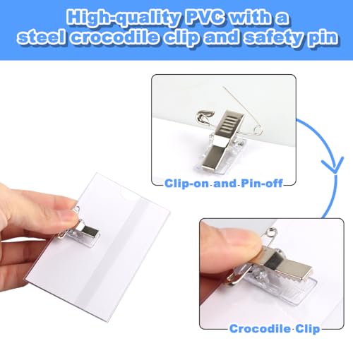 Porta Badge Orizzontale Clip, 100 Pezzi Porta Badge in Plastica Trasparente, Porta Tessere in PVC Trasparente Resistente all' Acqua Per Infermiere, Scuole, Conferenze, Ufficio E Visitatori