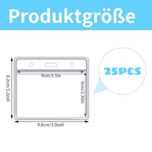 DIMENSIONE - Riceverai 25 portabadge. La dimensione dei portabadge è 10 x 8 cm / 3,9 x 3,1 pollici, che possono contenere carte di 9 cm / 3,54 pollici di lunghezza e 5,5 cm / 2,16 pollici di larghezza.