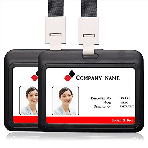 2 porta badge orizzontali con cordino da collo, targhetta per nome, tessere per studenti, biglietti da lavoro. Nero