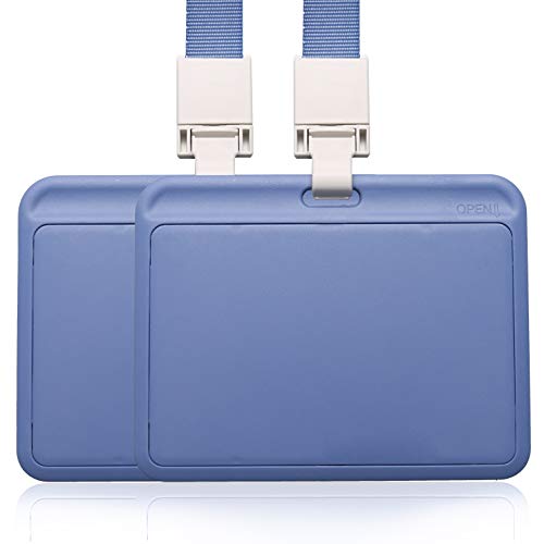 2 porta badge orizzontali con cordino da collo, targhetta per nome, tessere per studenti, biglietti da lavoro. Grigio-blu