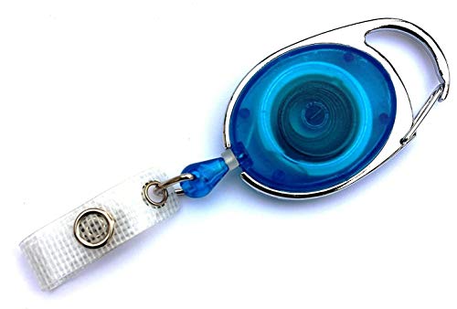 Porta badge Jojo ovale con clip per passanti in blu trasparente.