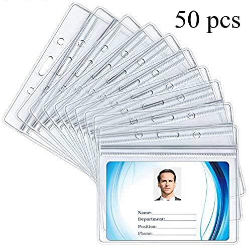 Saim - Porta badge in plastica trasparente, impermeabile, 50 pezzi